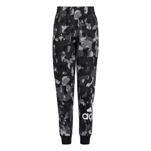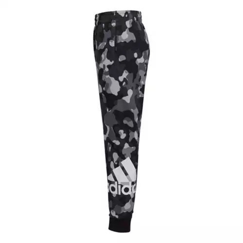 The Core all over print camo joggers have an elastic waisteband with adidas Badge of Sport on the bottom of left leg. With on seam pockets and cuffed at the bottom.
