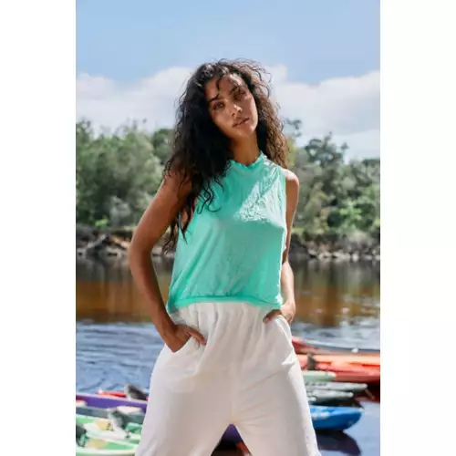 Get moving in this lightweight muscle tank featured in a cropped silhouette with ribbed hemlines and dropped armholes.
