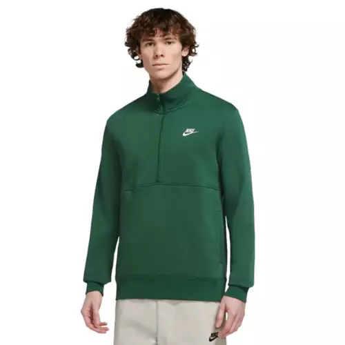 The Men’s Nike Sportswear Club 1/2 Zip is an essential layering piece for your wardrobe. Designed with brushed fleece and a ribbed hem and cuffs, this Nike pullover provides ultimate comfort during any activity. The half zip closure on this Nike Sportswear Club pullover allows you to customize your look with styling and fit options. From cool morning jogs to sitting in the lecture hall, the Nike Club 1/2 Zip pullover is a perfect choice. For comfy and versatile layering, wear the Men’s Nike Sportswear Club 1/2 Zip.