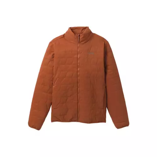 The prAna Alpine Air Jacket for men is made from a matte finish recycled nylon ripstop fabric with coating and PFAS Free DWR. It is insulated with 60g PrimaLoft® P.U.R.E. Black synthetic fill, and produced using reduced emissions entirely from post consumer plastic waste. Design details of this slim fit jacket include geometric quilting pattern on body and sleeves with quilting reversed to interior on side panels, lightweight slim vislon center front zipper with full length interior draft flap and zipper garage, silicone tipped cord zipper pull tab at center front, lightweight reverse coil zip hand pockets, packable into wearer’s right hand pocket, stretch binding at bottom hem and sleeve cuff, and a Grosgrain hanger loop. Dimensions: CB 27 1/2″ (69.85 cm) long