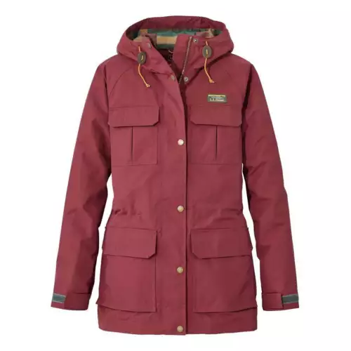 Stay stylish and dry in the Women’s L.L. Bean Water-Resistant Mountain Classic Rain Jacket! This jacket is made with wind, water, and abrasion-resistant nylon exterior to protect against the elements. The two-way zipper, buttoned storm flap, and velcro cuffs seal out cold drafts. The adjustable hood adds extra weather protection, while the internal drawcord at the waist ensures the best fit. The polyester taffeta-lined sleeves make it easier to wear the jacket with layers, while two chest pockets provide extra storage. For a classic look, the jacket features the heritage-inspired Mt. Katahdin logo and a striped flannel-blend interior. The jacket also features two front pockets so you can keep your hands warm and your items safe. With the Women’s L.L. Bean Water-Resistant Mountain Classic Rain Jacket, you’ll stay dry and look great!