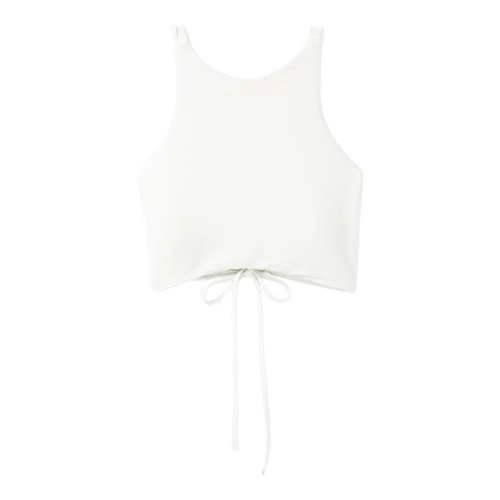 Recycled Ottoman, chlorine resistant, quick drying stretch fabrication. UPF 50+ Rated • High neck top • Multi strap detailing • Adjustable shoulder straps • Tie back closure • Fully lined • Removable soft cups • Max Coverage, Moderate Support