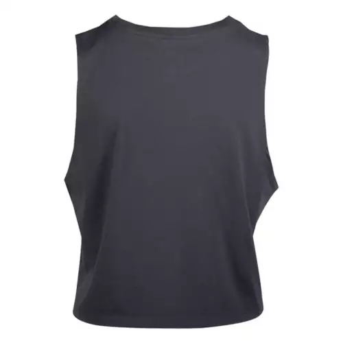 Cropped Crew Neck Muscle Tee With Front Screen Print. Ultra Soft 130 Gram Cotton Jersey. Machine Washable.