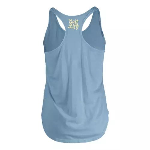 Skinny Strap Racer Back Tank With Front And Back Screen Prints. Scalloped Hem. Our Salt Wash Gives Each Garment An Authentic Vintage Look. 100 Cotton Jersey. Preshrunk. Machine Washable
