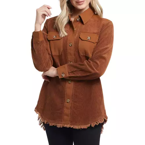 We can’t stop wearing the shacket trend and this corduroy piece is our latest obsession. We love the 29″ length, classic button-front with shirt collar, curved shirttail hem, and chest patch pockets that put the finishing touch on this casual must-have.
