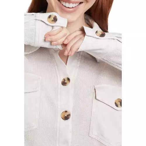 We can’t get enough of the shacket trend and it’s here to stay! This piece is our current obsession, thanks to its 29″ length, classic button-front closure, contrasting cuffs, collar, and chest flap pockets, all wrapped up in our super soft waffle knit fabric that keeps you feeling comfy and looking stylish all day long.