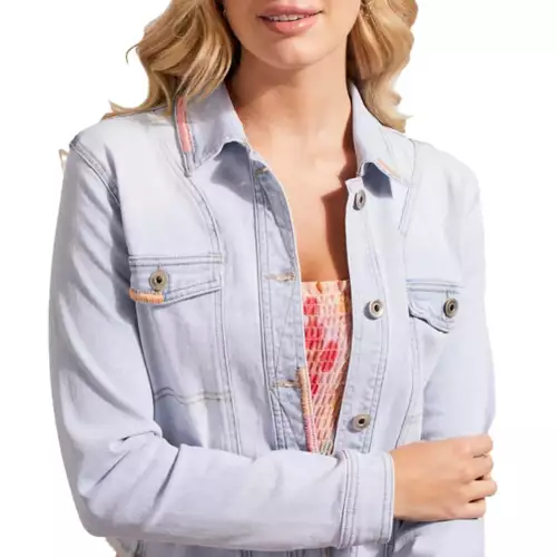 Women’s Tribal Frayed Hem Embroidered Denim Jacket