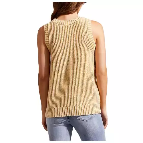 Sweater vests can instantly dress up a basic top and this crewneck option achieves that, no questions asked. We adore the cotton yarn fabric showing off a ribbed pattern, classic sleeveless cut, hi-low hem, and vintage wash that adds a little extra zest.